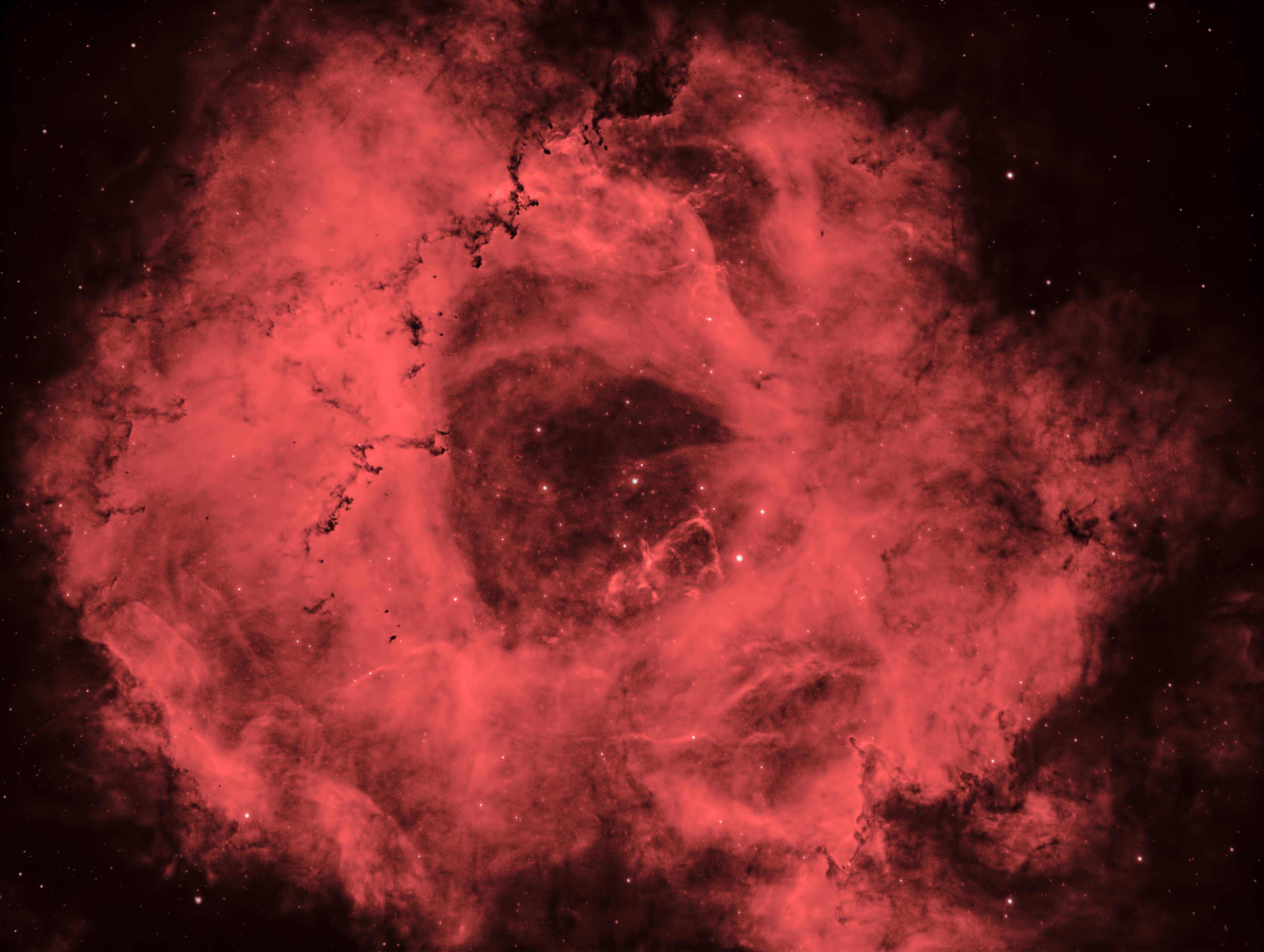 | Rosette Nebula (NGC 2244) w/Astro-Tech AT115EDT 805mm f/7 - 100 minutes total integration time with H-alpha filter [3/7/2020] |