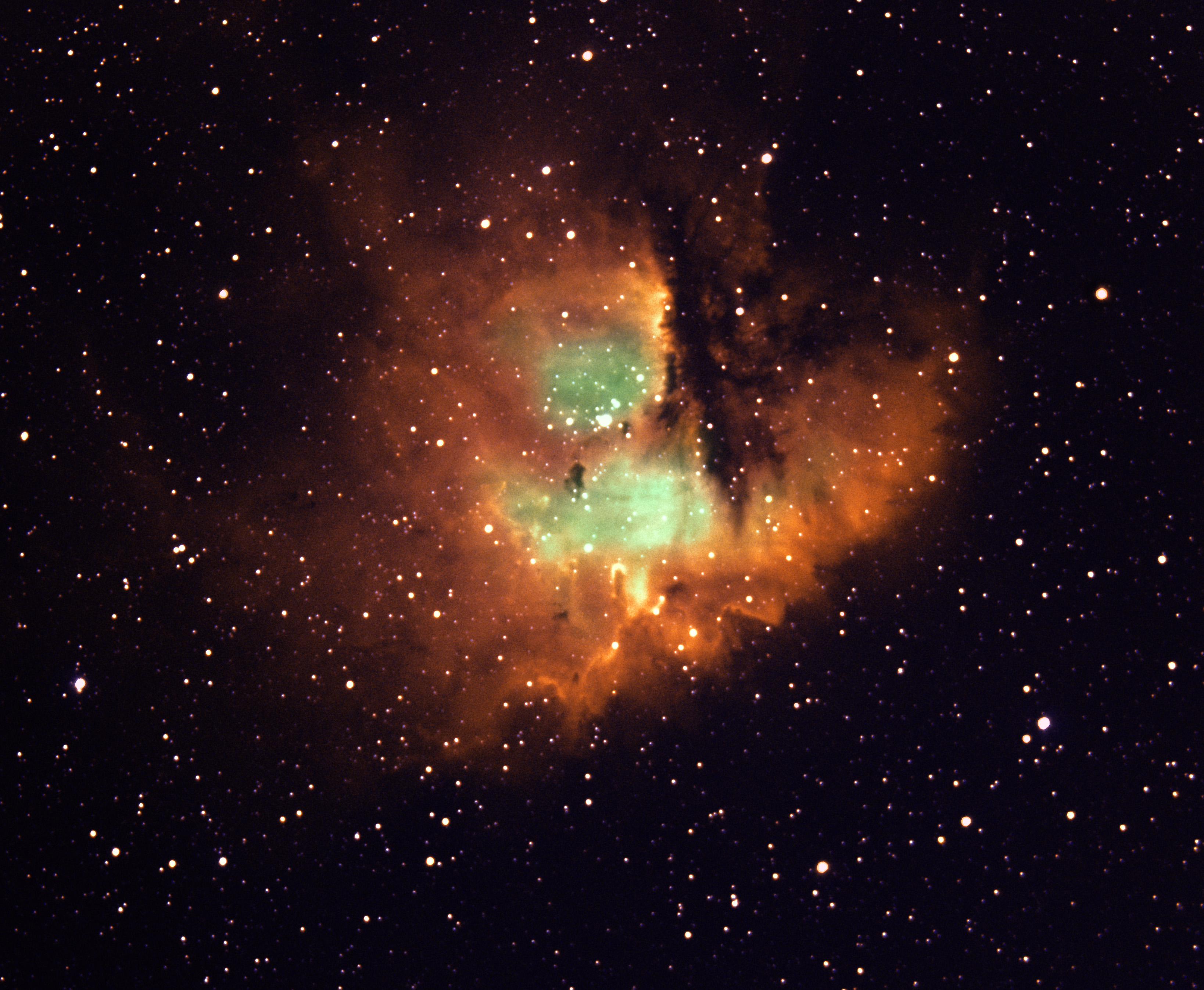 | NGC281 - PacMan Nebula (H-alpha + O-III) w/600mm f/4 + 1.4xTC (840mm f/5.6) and Autoguiding [6/22/2019] |