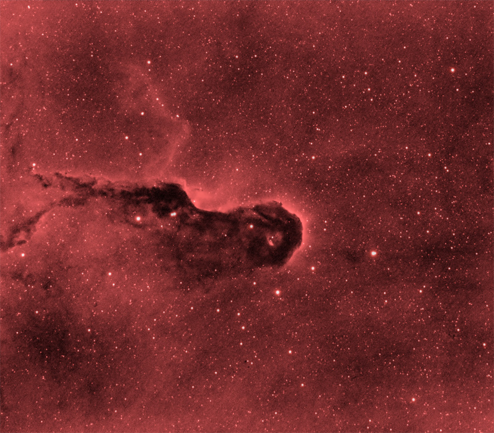 | IC1396 'Elephant Trunk Nebula' (H-alpha only) First Light with the Edge HD Schmidt-Cassegrain 8 inch telescope (configured at 1400mm f/7) |